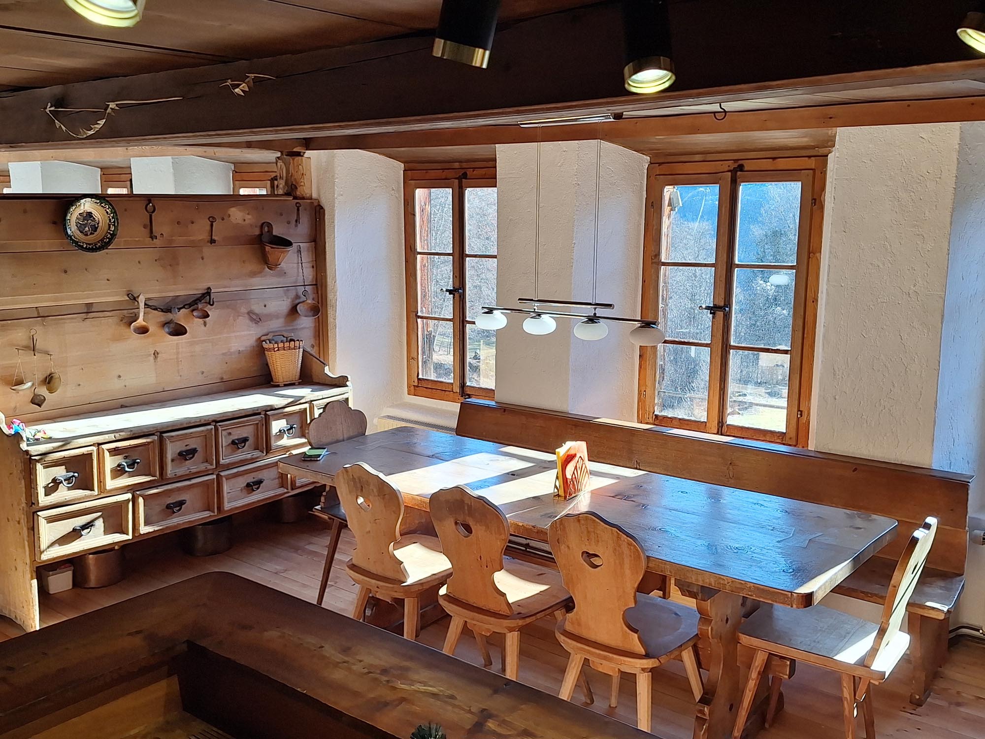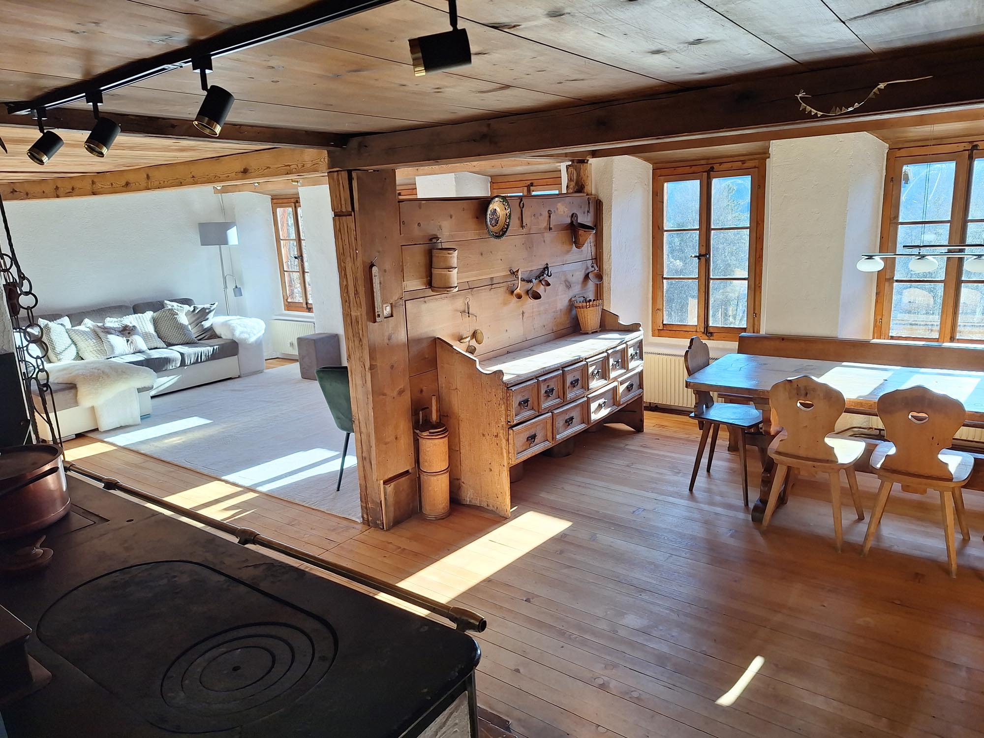 Der Ort für gemütliche Fondueabende – halb drinnen, halb draussen. Perfekt für winterliche Kuschelstunden oder laue Sommernächte.